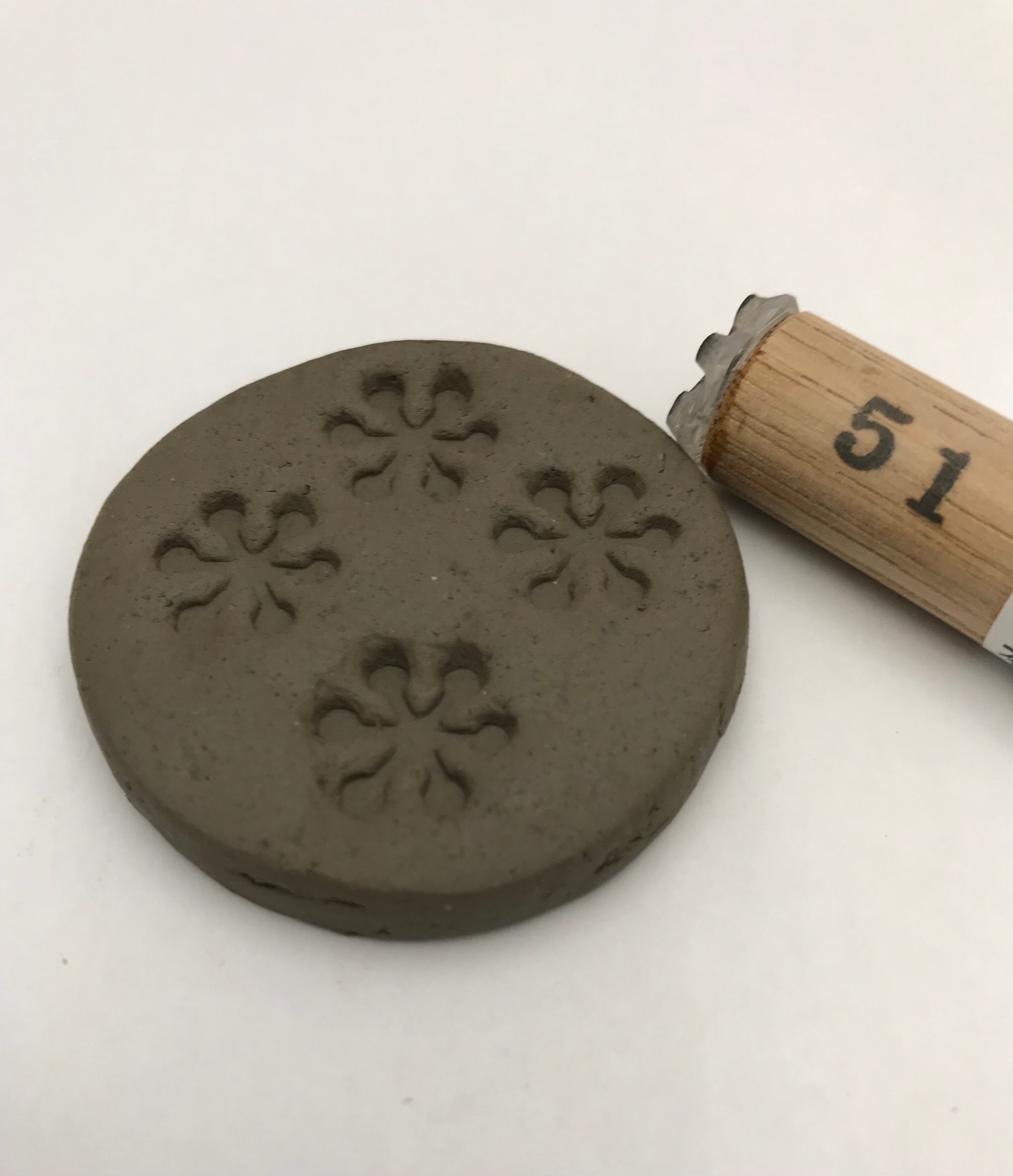 樹脂製の陶芸用はんこです。やわらかい粘土に押し付けて使用します。